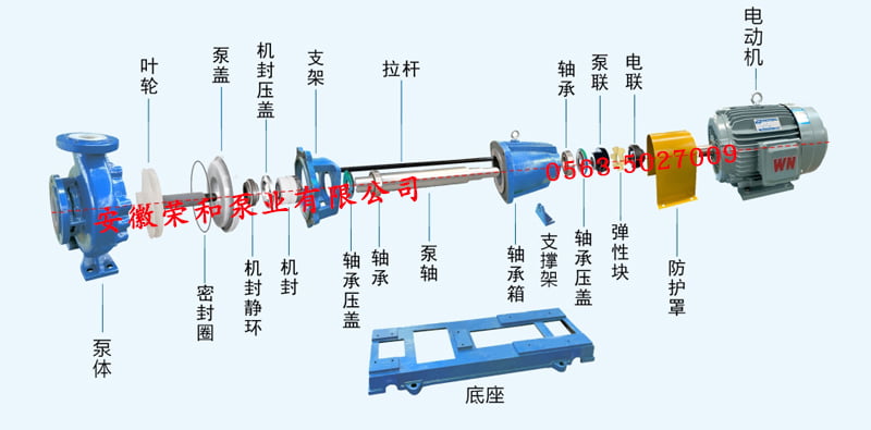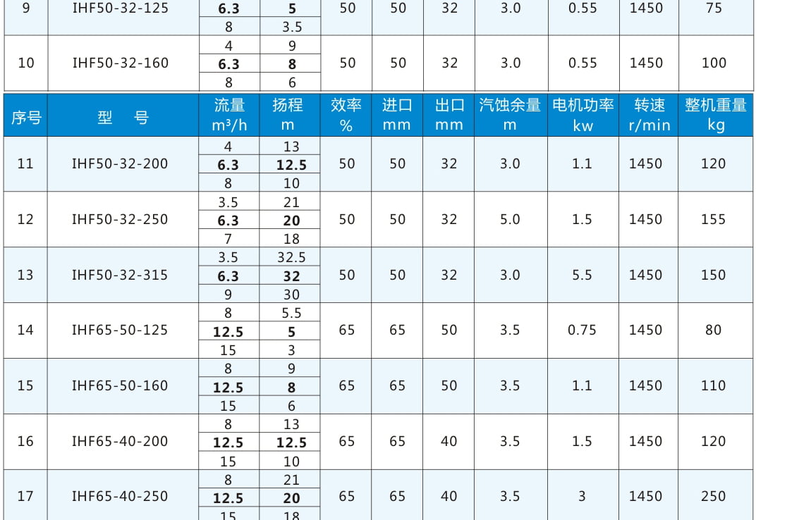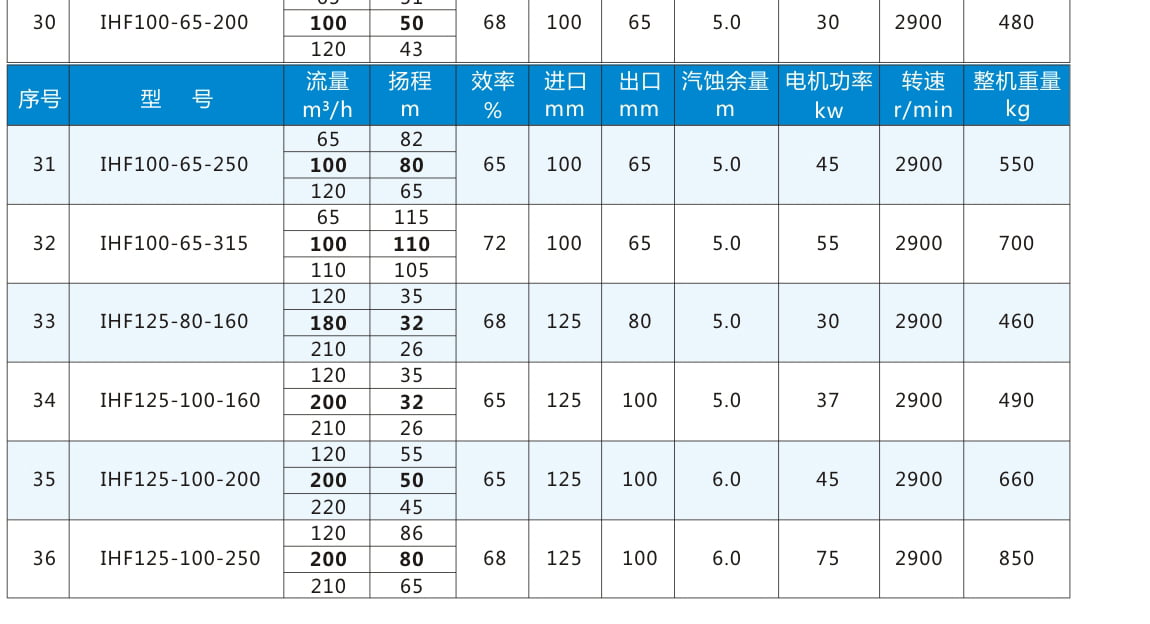 IHF:氟塑料合金離心泵代號丨 80:進口直徑80mm 丨65:出口直徑65mm 丨160:葉輪名義直徑160mm