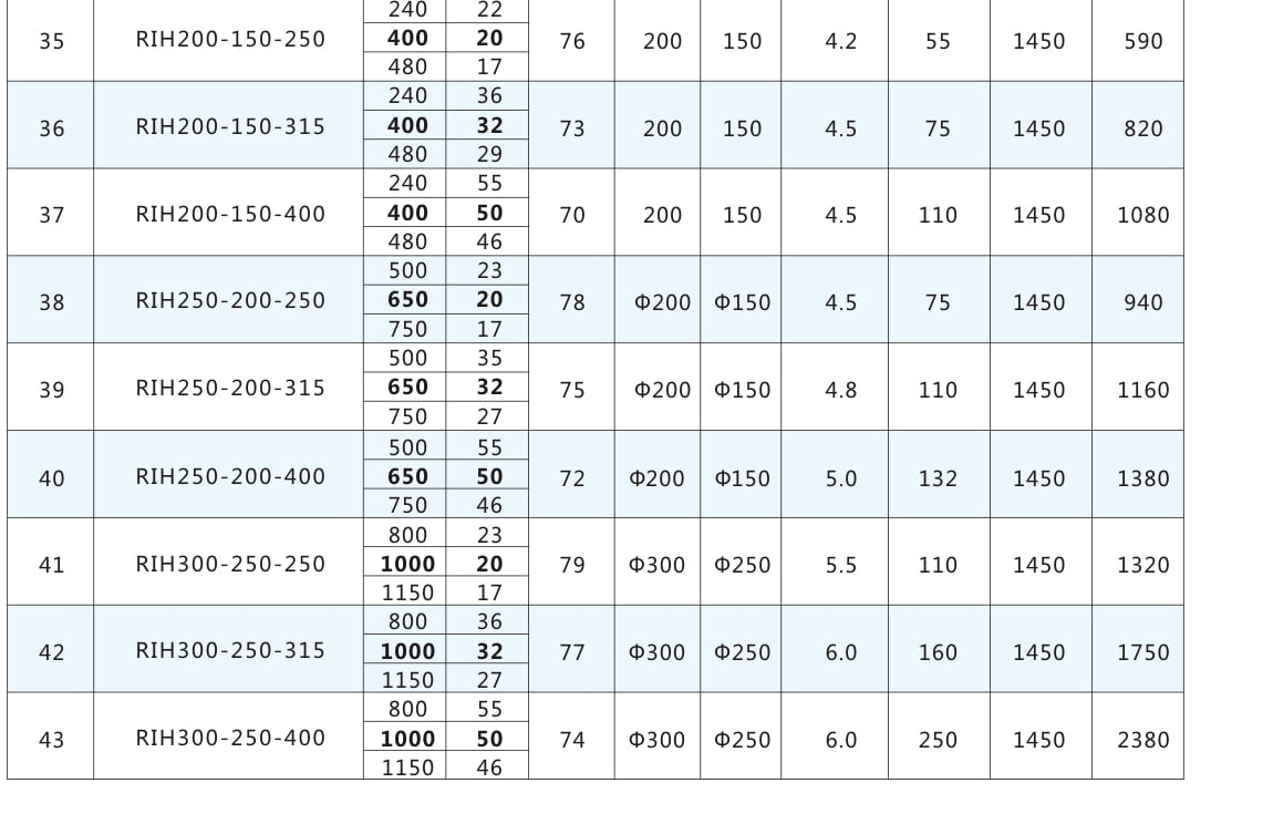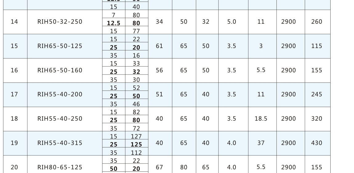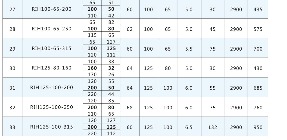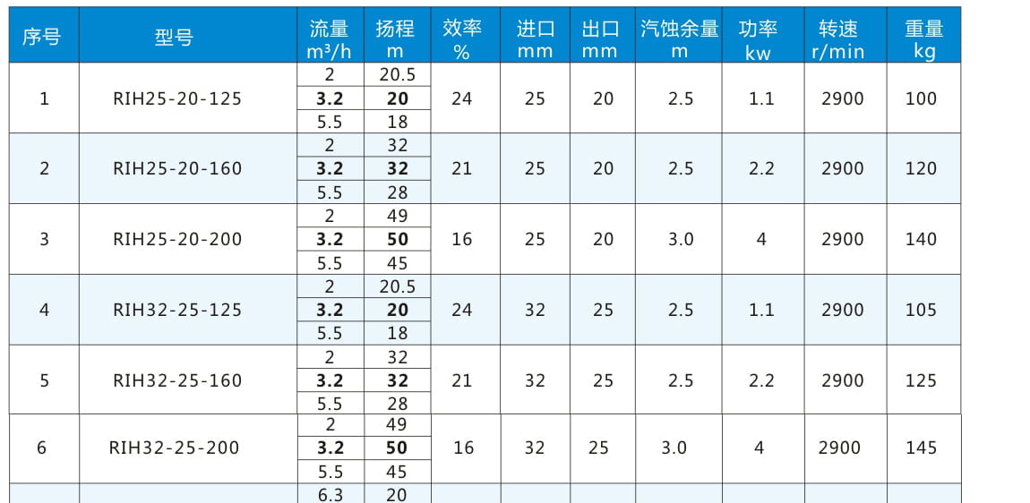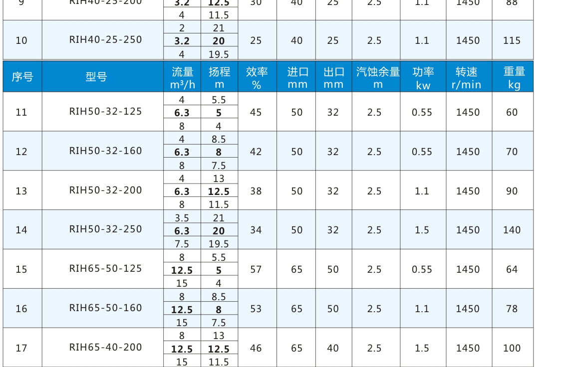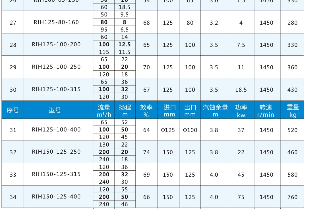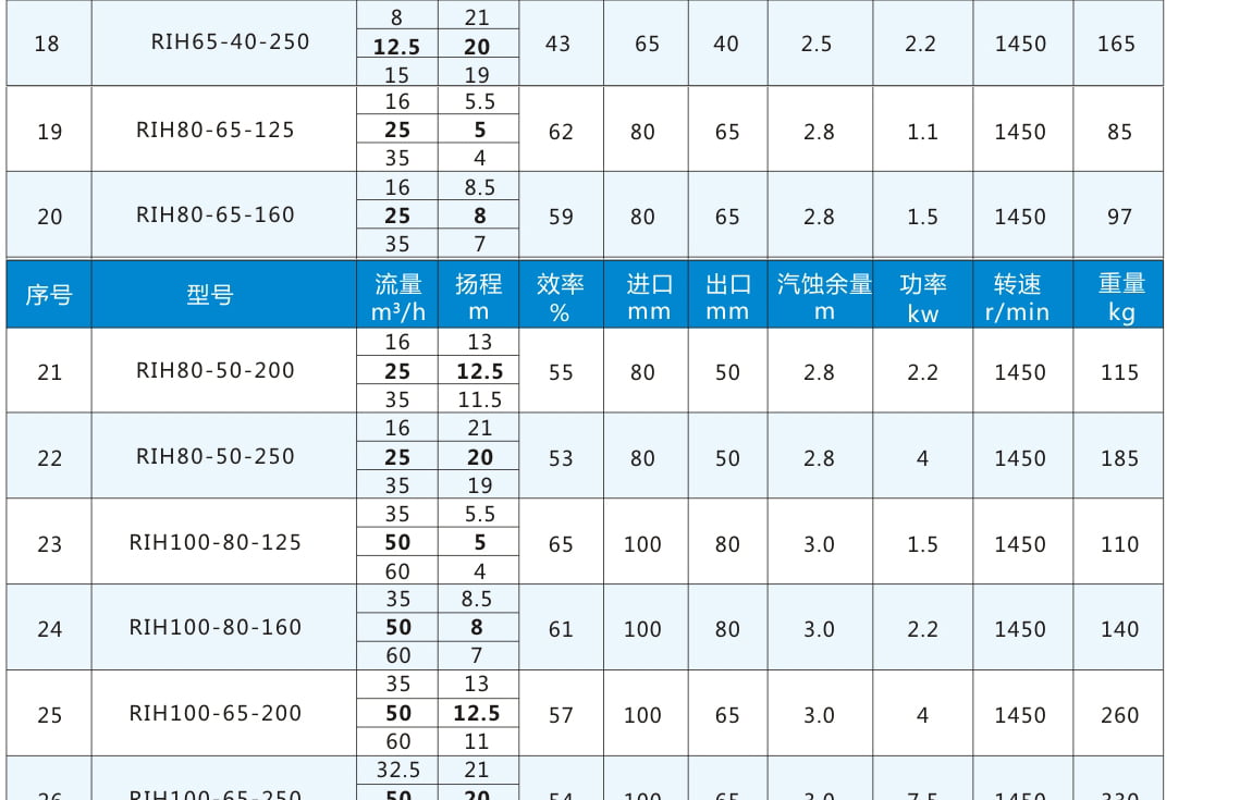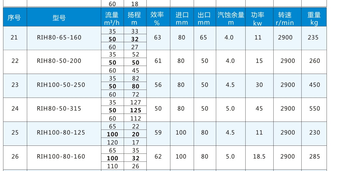 RIH:不銹鋼離心泵代號丨 80:進口直徑80mm 丨65:出口直徑65mm 丨160:葉輪名義直徑160mm