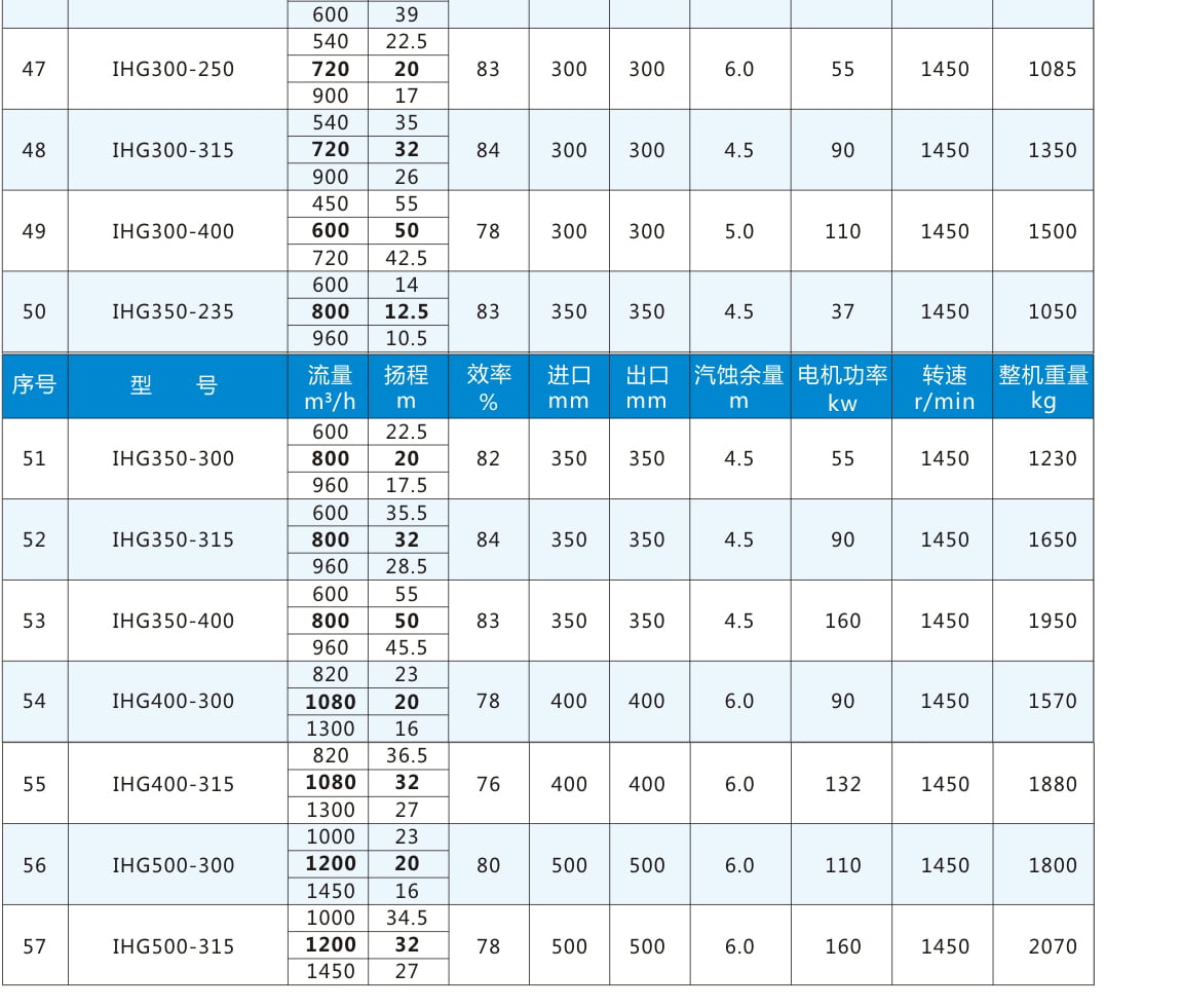 性能參數表三:電機轉速980r/min,表中流量揚程加粗為額定參數
